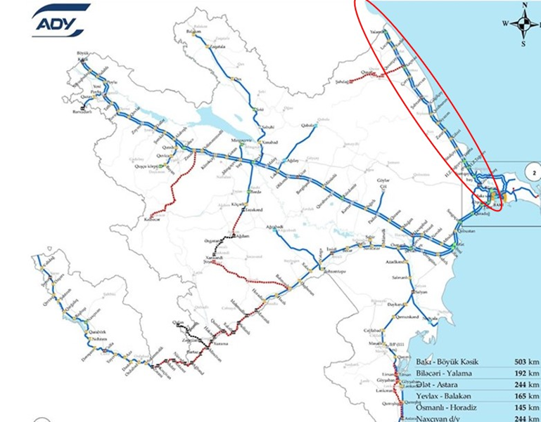 •  ბაქო – მეგრის (სომხეთის საზღვარი) მიმართულება (ე.წ. ზანგეზურის დერეფანი).