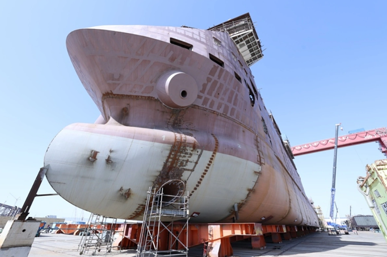 ბორნის კორპუსის მშენებლობის 99% დასრულებულია. პარალელურად მიმდინარეობს ელექტროსამონტაჟო და მექანიკური სამუშაოები.