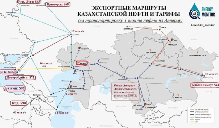 რაც შეეხება ყაზახეთს, ის დღემდე ნავთობს როგორც რუსეთის გავლით, კასპიის მილსადენის კონსორციუმის ნავთობსადენით, ასევე აზერბაიჯანის ნავთობსადენით – ბაქო – თბილისი – ჯეიჰანით აწვდიდა.