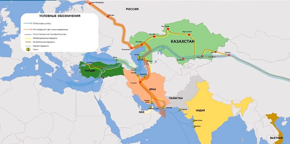 2026 წლის დასაწყისში, ირანის წინააღმდეგ აშშ-სა და ისრაელის დაპირისპირების მიუხედავად, ყაზახეთი თურქმენეთის გავლით ირანზე გამავალ, მის საზღვაო პორტებთან წვდომის მქონე სატრანსპორტო მარშრუტს, როგორც პერსპექტიულ სატრანზიტო დერეფანს, განიხილავს (იხ. სქემა).
