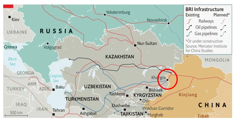 ხორგოსის სარკინიგზო ტერმინალის სახელით ცნობილი დრაი პორტი, როგორც ფართობით, ასევე ტვირთბრუნვით, ცენტრალურ აზიაში ყველაზე დიდია.