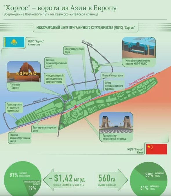ხორგოსის ტერმინალი ცენტრალურ აზიაში ყველაზე მსხვილ დრაი პორტს წარმოადგენს, რომელიც ექსპლუატაციაში 2015 წელს იქნა გაშვებული და ყაზახეთ-ჩინეთის საზღვარზე 560 ჰექტარზეა განთავსებული. ჩადებული საერთო ინვესტიციის მოცულობა 1.42 მილიარდი დოლარია (იხ. დრაი პორტის სქემა).